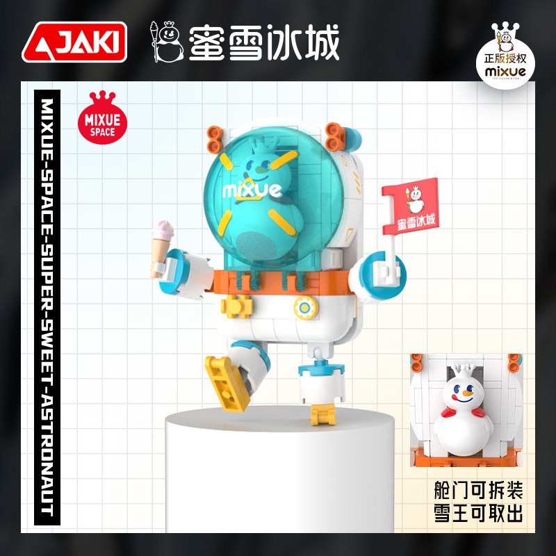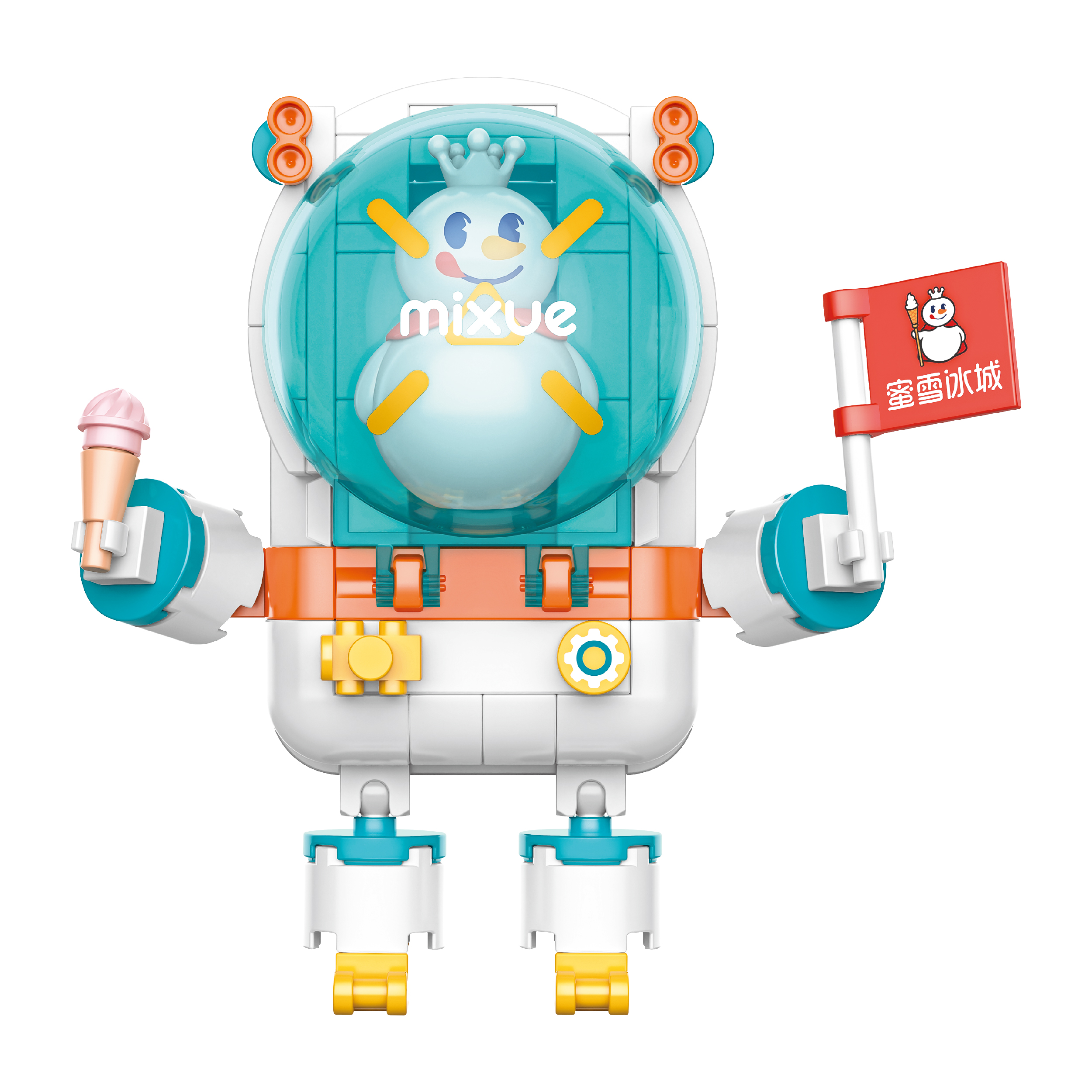 左手拿蜜雪旗幟,右手拿草莓冰淇淋,雪王宇航員成功出艙啦