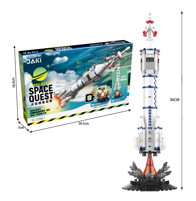 運載火箭能將各種航天器推向太空。神龍一號運載火箭通體潔白,全高約36cm,火箭總體由四個液體助推器、芯一級火箭、芯二級火箭、整流罩和逃逸塔組成。配套有火箭噴射底座,尾部內部LED燈可模擬火箭點火狀態(tài),配套一名航天員人仔,為你再現(xiàn)火箭升空的壯觀場景!